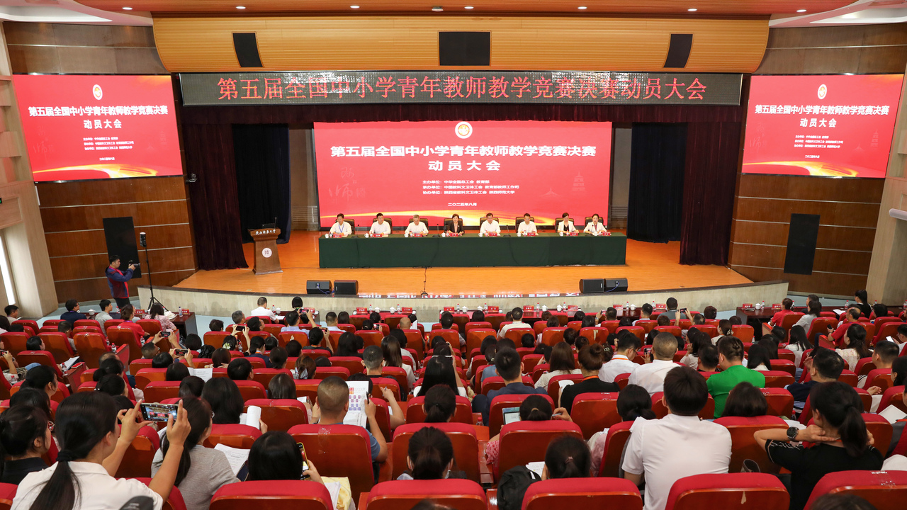8月25日,第五届全国中小学青年教师教学竞赛决赛在陕西师范大学长安校区开赛。来自31个省(区、市)和新疆生产建设兵团的161名优秀青年教师参加。